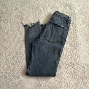 Agolde Jeans Women's Size 25 Rooted High Rise Slim Fit Distressed Button Fly, featuring a flattering high-rise fit, slim silhouette, distressed detailing, button-fly closure, premium denim fabric, vintage-inspired style, comfortable stretch, classic five-pocket design, versatile wear, and perfect for casual or edgy looks.