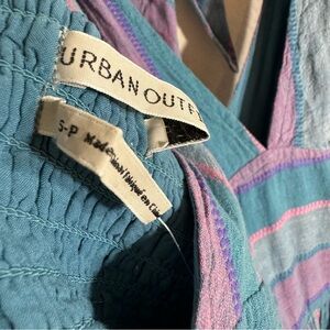 Sunshine day every day in this halter midi dress from Urban Outfitters. Made from a lightweight linen fabrication in a banded waist construction. Topped with a plunging v-neckline + halter tie closure that leads to an open back. Finished with a high-rise midi skirt bottom that features pleated detailing + smocked detailing to the reverse for the perfect fit.