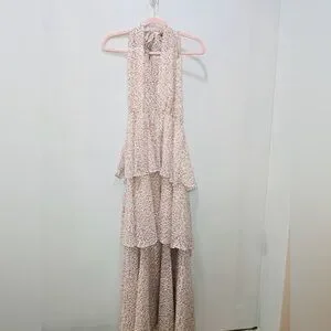 Aakaa Floral Tiered Open Back Dress. Size Medium