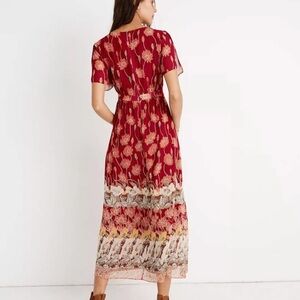 Faux wrap, tulip sleeve maxi dress with vibrant floral print from Madewell. Hidden back zipper. No pockets. 100% polyester, fully lined in polyester. This is gently used in great condition, very small spot on the waist line, no other flaws or signs of wear. Fun and cute dress!