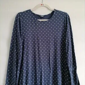 Old Navy Womens Navy Blue Long Sleeve Polka Dot Comfy Swing Dress Size Large