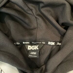 Black DGK hoodie with logo detail inside. Comfortable and stylish.