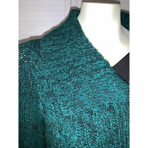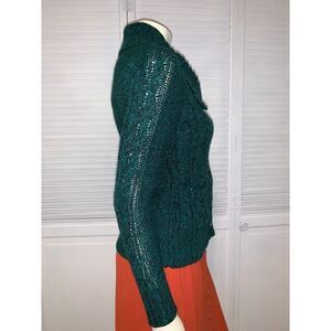 Vintage Y2K Button Down Cardigan Knit Sweater. Green marbled chunky knit. Fitted button down with front mini pockets long cuffs and large collar. One hundred percent acrylic. Great vintage condition. Size PS. Bust 18.5” across laying flat. Length 24.5”. Sleeve 26.5”