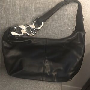 BNWOT!! Elegant black vegan leather shoulder bag with a stylish silver chunky chain link accent at shoulder strap. Unique & Stylish.