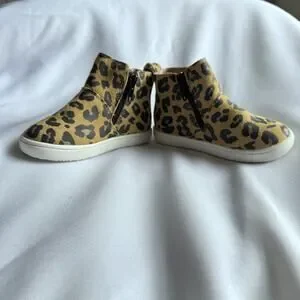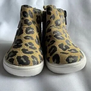 Boutique Girls Leopard Print Ankle Boots Size 18–24M Leather Neutral NEW