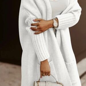 NEW Aoysky Womens Long Cardigans Cable Knitted Open Front Oversized Hooded Outerwear Sweater Coat medium White