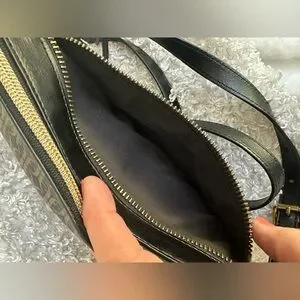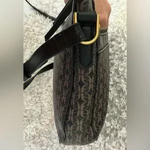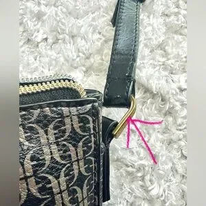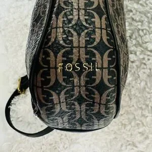 Fossil Farrah Crossbody Bag in good condition. Fossil pattern. Bag has zippered outside pocket and a main compartment with slide pocket and zipper pocket. Strap has 2 scratches shown in last 2 photos and there is some stitching coming out inside seen in the interior photo. Issues do not detract from its beauty! Please look over all photos.