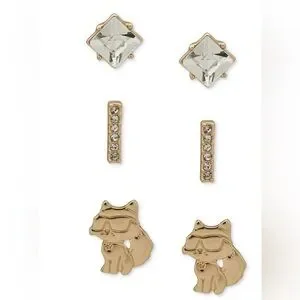 Karl Lagerfeld 3pc Set Crystal & Choupette Stud Earrings