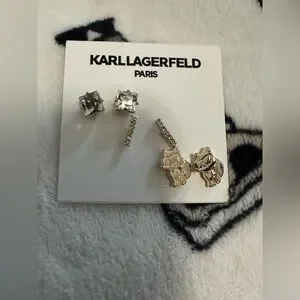 A three-piece set of KARL LAGERFELD PARIS stud earrings, perfect for adding extra style to your ensemble.