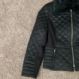 Classic, Cosy Black Puffer Jacket by White House Black Market w/ Faux Fur Collar