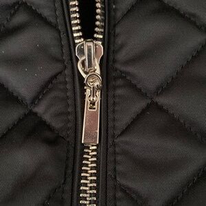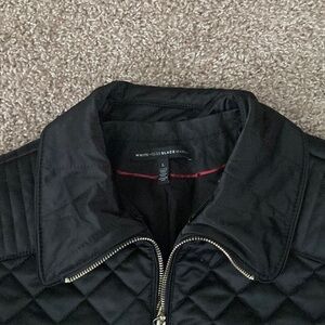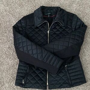Stand out with this stylish, faux-fur-trimmed black puffer jacket by the always elegant White House Black Market. Slim design lets you keep a cute profile (unlike many puffers) but still remain cosy warm for any fall, winter, & spring needs. Size L, structured fit, varied stitching creates a strong aesthetic look. Gold accents; long soft “fur;” supple exterior fabric; thin, smooth gusseted inner lining. QUALITY construction. This jacket can be styled casual, classy, punk, moto, and will last through other trends that come & go. A baby bump put me out of this before l wore it more than 3-4 times, and l haven’t made it back yet—or l’d never sell it. In nearly new condition. I LOVE this jacket—it looks SO GOOD on!