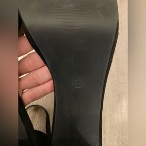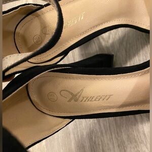 Athlefit Black High Heels Platform Block Heel Chunky Faux Suede Ankle Strap 7.5