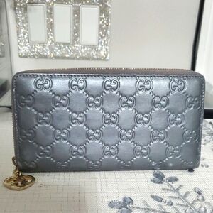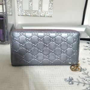 🇮🇹Gucci Guccisima Metallic Gray GG Embossed Zip around Wallet