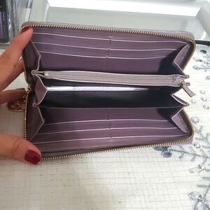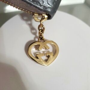 Chic Gucci Guccisima Metallic Gray GG Embossed Zip around Wallet with a Beautiful Big GG Interlocking Heart Gold Charm zipper pull. Sleek metallic finish. Ideal for stylish outings. Gucci GG Signature Guccissima Leather Zip Around Wallet in Grey. This wallet is versatile that you can attach a long or short chain to convert to a crossbody or wristlet reference