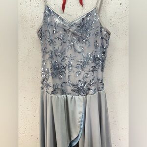 Weissman Sequin Floral High-Low Georgette Dress Dance Costume Adult Large Blue