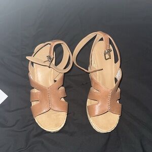 Stylish UGG wedges with a tan leather upper. Features a woven wedge heel. Perfect for casual outings.