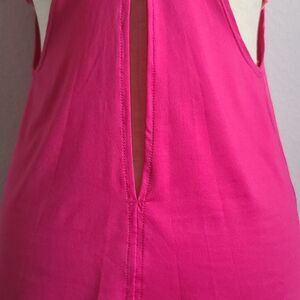 Beautiful and very versatile workout top. all in one piece!! great style and shape, Beautiful coral and hot pink colors with striped attached bra. Spaghetti straps.