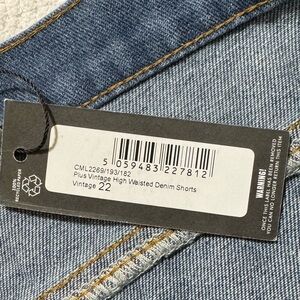 PrettylittleThing Plus 18 Vintage High Waisted Blue Denim Shorts