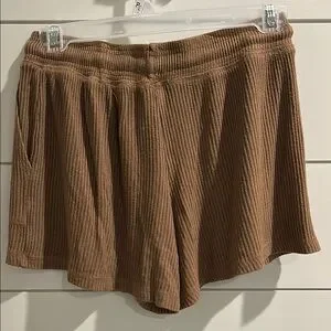 Cozy ribbed lounge set. Top is long sleeve with cowl neck. Shorts are elastic with drawstring and pockets. Includes top and shorts. Perfect for relaxing.