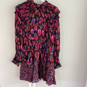 Farm Rio Iridescent Leopard Print High Neck Ruffle Mini Dress - Size XS - NWT