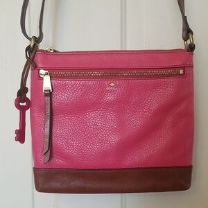 Fossil pink and brown leather crossbody