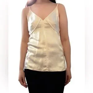 Chic cream satin camisole with a minimalist design. Ideal for versatile styling.