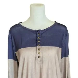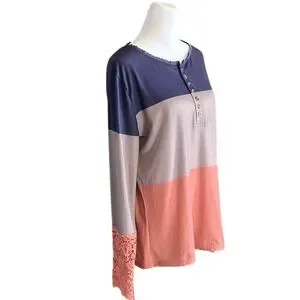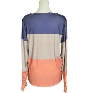Unbranded Colorblock Crochet Lace Sleeve Henley Shirt Size XL