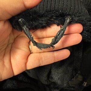 Callouts: due to prolonged hanging the strap used to hold hanger is coming apart as well as leather from where the hanger arms were sitting