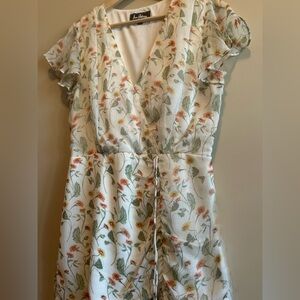 Sam Edelman Floral Dress, Ruched Waist, Cream color, Size 8