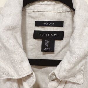 This Tahari dress combines casual elegance with its buttoned front and tie waist, perfect for work or casual outings. The tan color and polo collar add a touch of sophistication, while the cuffed short sleeves ensure comfort and style.