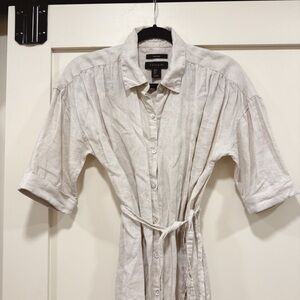 Linen Tan Cream Shirt Dress