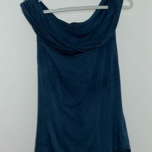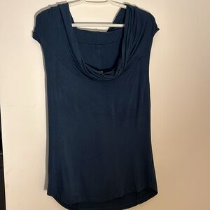 This elegant blue women's top features a stylish draped neckline, perfect for any occasion. Its soft fabric ensures comfort and a flattering fit. Sleeveless beautiful navy blue . Pics do not do this top justice. PIT to PIT 18in. , ( without stretching) , LENGTH 27in. 94% Rayon, 6% spandex. Really pretty top for summer