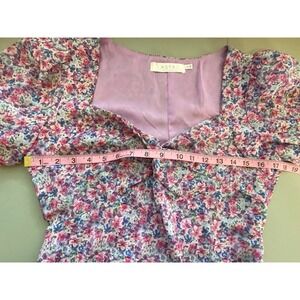 This beautiful ASTR The Label dress is perfect for any occasion. The floral pattern and sweetheart neckline give it a romantic and feminine touch. The dress is made of polyester and has a chiffon fabric type, making it lightweight and comfortable to wear. It features a zip closure, short puff sleeves, and a side slit. The dress is a size M and fits as a regular size. It is recommended to hand wash the dress to ensure its longevity. This dress is perfect for summer, fall, and spring seasons and can be worn as a maxi or midi style.
