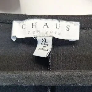 This stylish black blouse from Chaus features a relaxed fit with dolman sleeves and a fashionable tie front. The soft fabric drapes beautifully, offering both comfort and elegance for any occasion.
