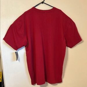Bold red tee with a classic fit. Features a chest pocket with logo. Ideal for everyday wear.
