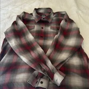 Stylish plaid design. Red and gray tones. Perfect for casual outings.