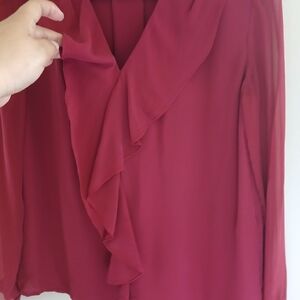 Elie Tahari Red Ruffled Long Sleeve Blouse Sz S