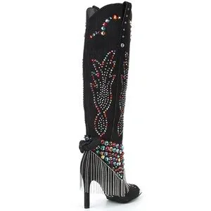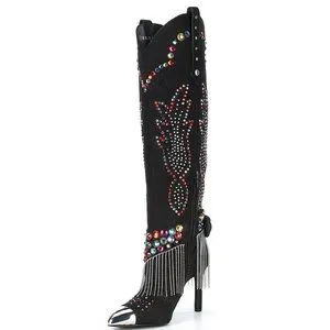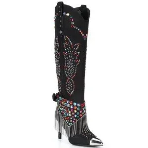 From Gianni Bini, the Kaitrin Rainbow Rhinestone Fringe Bandana Over The Knee High Tall Boots feature: