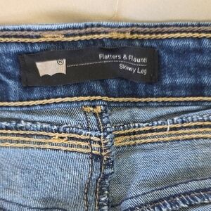 These Levi's blue skinny jeans are crafted from premium denim, offering a sleek and modern silhouette. The classic indigo hue ensures a versatile addition to any wardrobe, perfect for casual outings. Experience the iconic Levi's quality and style with these must-have jeans. A patch in the crotch area covering a hole.