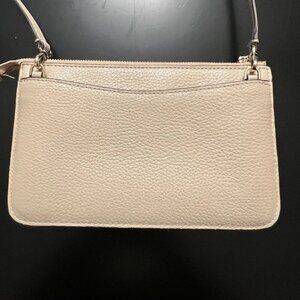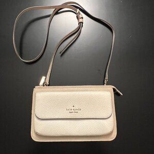 Kate Spade Leila Small Flap Crossbody Bag Light Sand Two-toned Leather Purse EUC