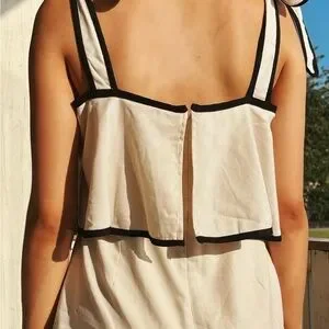 Boutique cream romper with black trim