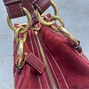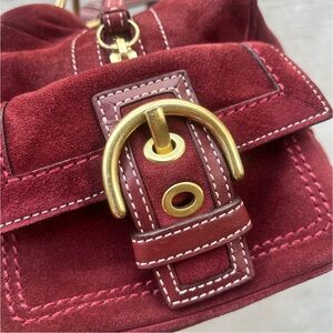Vintage Coach Burgundy suede leather shoulder bag with gold-tone hardware.