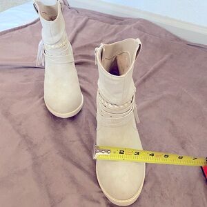 Jellypop woman’s ankle boots. Nice met riel cream color to go with any outfit. Size 6M. Inner zippers. See pictures for measurements. New without tags. Never worn.