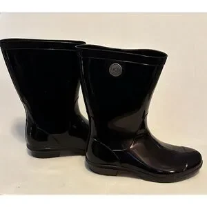 UGG Sienna Women's Black Gloss Mid-Calf Rain Boots Size 7