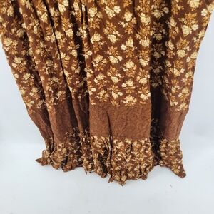 April Cornel Floral Brown Maxi Dress With Lace Trim Cottage Core Size XLarge