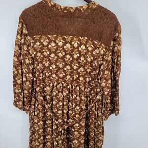 April Cornel Floral Brown Cottagecore Dress With Lace Detail Size X Large