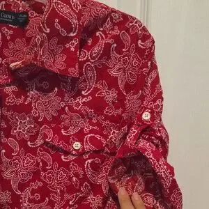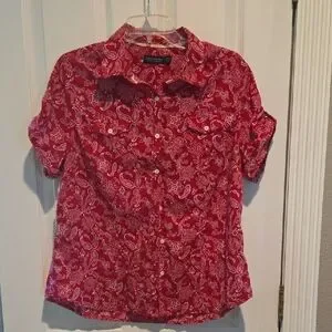 Faded Glory Red Paisley Button Down Shirt