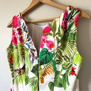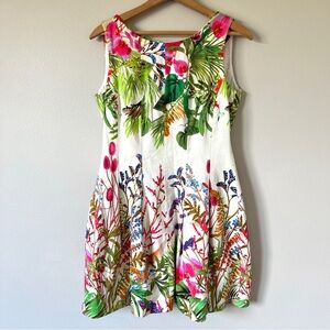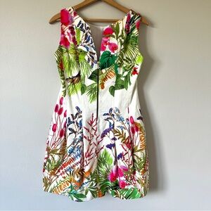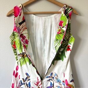 Zara White Cotton Tropical Floral Mini Panel Dress with Back Cutout