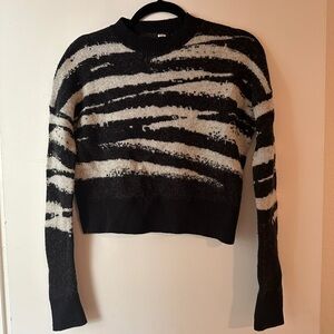 Grey zebra printed knit (14% Merino, 43% Nylon, 43% Alpaca). Sweater. Long sleeves. Imported