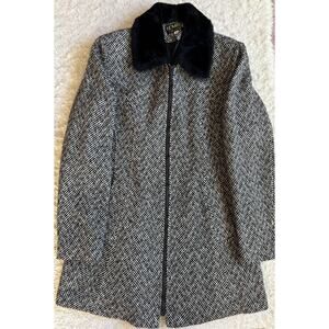 Vintage Komitor Made in USA Womens Small Wool Blend Full Zip Long Collared Coat